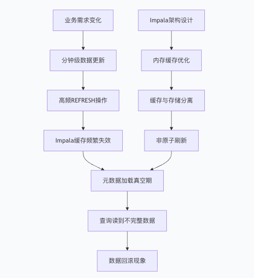 经过深入分析,发现问题根源在于Impala的元数据缓存机制与高频更新场景的不匹配。