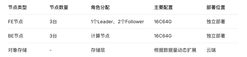 为满足业务高可用和高性能需求,我们设计了3FE+3BE的独立部署架构,采用存算分离模式:
