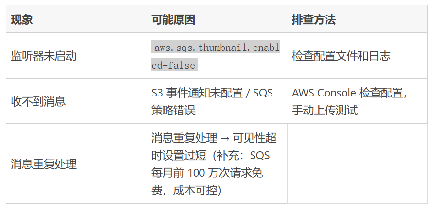 摘要 :在现代云原生应用中,文件上传后的自动化处理(如缩略图生成、格式转换、内容审核等)是一个极为常见的需求。本文以真实生产项目为基础,详细讲解如何利用 AWS S3 事件通知 + SQS 消息队列构建一套事件驱动架构,并在 Java(Spring)项目中实现完整的监听 → 过滤 → 异步处理链路,涵盖防循环触发、并发控制、内存安全等生产级关键细节。