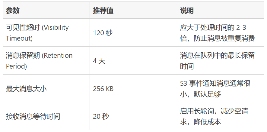 2.2 方案二:S3 事件通知 + SQS(推荐方案)