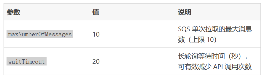 2.启用长轮询 (waitTimeout=20)— 节省 API 费用,降低空请求